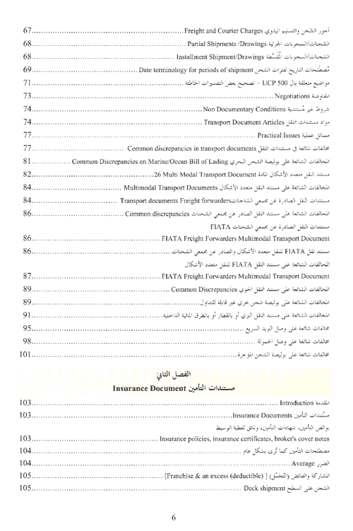 وفي هذا الكتاب يعرض المؤلف لأصول فحص المستندات المقدمة بموجب الاعتمادات المستندية وذلك عبر خمسة فصول، في الفصل الأول قدم بعض المعلومات الهامة عن مستندات النقل وعملية الاعتماد المستندي الأساسية. وفي الفصل الثاني، تحدث المؤلف بالتفصيل عن مستندات التأمين التي تؤمن الغطاء ضد الأخطار على البضائع خلال الرحلة من المستفيد بلد التصدير إلى بلد أخرى.