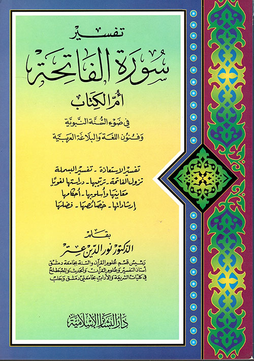وقد اعتنى الدكتور "نور الدين عتر" رئيس قسم علوم القرآن والسنة بجامعة دمشق بإعداد هذا التفسير معتمداً على القرآن الكريم والسنة كمادة له، ومعولاً على اللغة العربية بفنونها وآدابها، لكشف جانب من أسرار القرآن وإعجازه في هذه السورة الوجيزة المباني، الجليلة المعاني، وفإهتم أولاً بتفسير الاستعاذة والبسملة لأنهما ملازمتان لها، شبيهتان بها بكثرة التكرار، والتلاوة لهما على الدوام، ثم أكمل بتفسير سورة الفاتحة نزولها ترتيبها، معانيها وأسلوبها، أحكامها، وإرشاداتها، خصائصها وفضلها. إقرأ المزيد