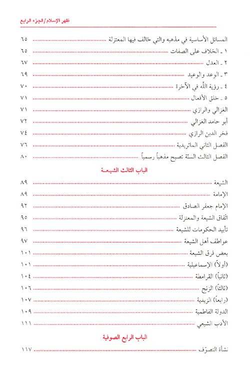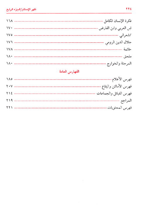 نبذة الناشر:كتاب في أربعة أجزاء يبحث في الحياة الاجتماعية والحركات العلمية والأدبية والفرق الدينية منذ العصر العباسي الثاني حتى العصور المتأخرة والكتاب مهم من حيث انه يصف لنا الحياة الاجتماعية في هذا العصر وصفاً دقيقاً ثم ينطلق إلى وصف الحياة العقلية والحركات العلمية والأدبية وخصائصها وأشهر رجالها.