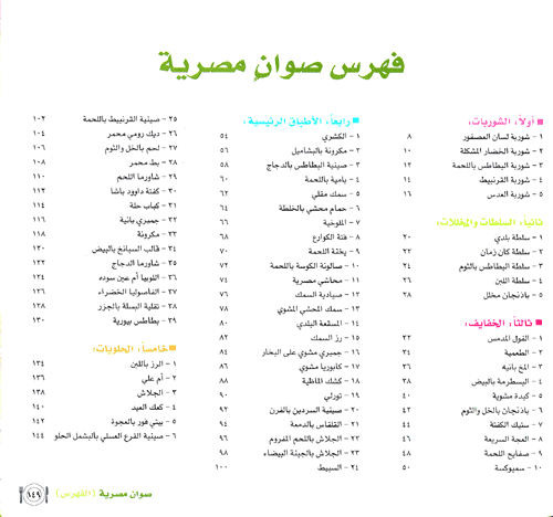وبالنسبة لقسم الأطباق الرئيسية فقد تضمن وصفات لأطباق شهية نذكر منها: الكشري، حمام محشي، الملوخية، محاشي مصرية، المسقعة البلدي، كابوريا مشوي، كشك الماظية، القلقاس بالدمعة، تقلية البسلة بالجزر... وهكذا. وقد شكلت وصفات هذا القسم جزءاً واسعاً من هذا الكتاب. وأخيراً فإن قسم الحلويات احتوى على الوصفات اللذيذة التالية: الرز باللبن، أم علي، الجلاش، كعك العيد، بيت فور بالعجوة، صينية القرع العسلي بالبشمل الحلو، كل تلك على الطريقة المصرية، كي يتعرف أهل البلاد العربية بصورة خاصة، وغيرهم بصورة عامة على مذاق الأطباق المصرية الشهية. والتي بإمكانهم تحضيرها بسهولة من خلال تتبع الطريقة المذكورة لكل صنف من الأصناف الواردة في هذا الكتاب، والمرفقة مع الصور الفوتوغرافية الموضحة لشكل كل طبق. إقرأ المزيد