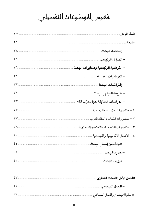 يبتعد ...هذا الكتاب عن التوثيق العادي للمحطات الرئيسية لحزب الله، ويعتمد مقاربة علمية حديثة لهذا الحزب، هذه المقاربة العلمية تستند إلى أحداث النظريات السياسية ضمن علم الاجتماع السياسي، وأساسها "العمل الجماعي" و"الديمقراطية التوافقية" الذين استند الكاتب إليهما لتبيان "نموذج تحليلي" لدراسة مواقف وممارسات حزب الله في حركته السياسية الداخلية خلال مراحل مسيرته الطويلة.