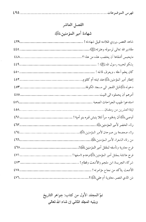 نبذة نيل وفرات:يقول مؤلف كتاب "جواهر التاريخ" بأنه من غير المتوقع من التاريخي الذي كتب بحبر الحكام، أن يكون منصفاً في بيان ظلامة المعارضة، فالحكومات تؤرخ لنفسها وتعظّم أشخاص الحكام، وتجعلهم في مصاف المصلحين والأولياء، وإن كانوا فاسدين مفسدين، كما يتفنن المؤرخون الحكوميون في التعتيم على المعارضة، فيصورون أنها لم تكن ...موجودة أصلاً، وإن اضطروا للاعتراف بها تعمدوا تهميشها وتشويهها أو هذا دأب كل الحكومات التي كتبت التاريخ الإسلامي، وأملت مصادر الحديث والتفسير والفقه، معقباً بأنه لا فرق فيها بين الأموية والعباسية والشركسية والعثمانية والحديثة، ولا بين مذاهبها، مضيفاً، بأنه لا بد ولفهم تاريخ الظلم والاضطهاد على أهل البيت الأطهار رضي الله عنهم وشيعتهم الأبرار، والتي كانت أطول ظلاّمة لأطول معارضة في التاريخ الإسلامي، لا بد من سماع كلام الشيعة أنفسهم، ولا بد من قراءة ما كتبته مصادرهم.