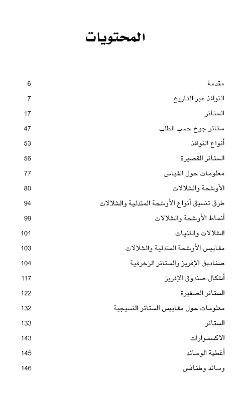يمثل هذا الكتاب دليلاً مصوراً ومنظماً وكاملاً للستائر وتوابعها وهو يضم عرضاً لجميع الموديلات الحالية من الستائر والأوشحة، وأغطية الأسرة والوسائد والطنافس، كما ويقدم أفكاراً جديدة ورائعة، وحلولاً عملية للنوافذ المستعصية، وموديلات اقتصادية جاءت بتوقيع مشاهير المصممين، هذا إلى جانب جداول لتحويل المقاسات. إقرأ المزيد