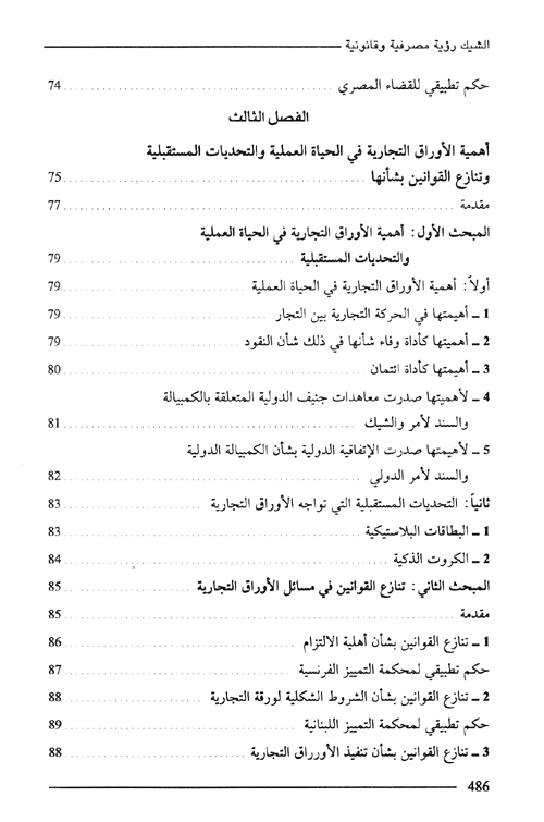 نبذة نيل وفرات:يقدم هذا الكتاب رؤية معرفية وقانونية للشيك من خلال اختيار مجموعة من الدول العربية التي تمثل الشمال الافريقي وآسيا والخليج لدراسة تنظيم الشيك فيها وكيفية التعامل المصرفي والقانوني متمثلة في قانون التجارة اللبناني السوري، الأردني، السعودي، القطري، الإماراتي، والتونسي واتفاقية جنيف الدولية المتعلقة بالشيك هذا بالإضافة للتشريع المصرفي الجديد.