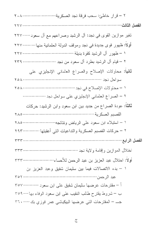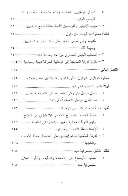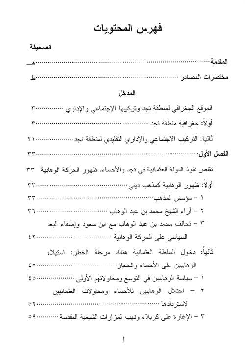 وهذا ما يحاول مؤلف الكتاب التركيز عليه إذ يقصر هنا مجال بحثه على نجد والإحساء، أو ما يطلق عليه هو اسم خليج البصرة كما يبحث في طبيعة الصراعات والنزاعات التي نشأت في هذه المنطقة مع عدد من القوى الأوروبية وعلى رأسها الإنكليز. وهنا يسلط الضوء على الحركة الوهابية وقيام الدولة السعودية، حيث أثار ظهور الحركة الوهابية الجدل الواسع بين المسلمين، كما كان ظهور السعوديين واعتمادهم الحركة الوهابية سبباً في زعزعة هيبة العثمانيين.