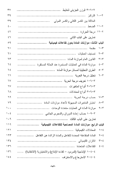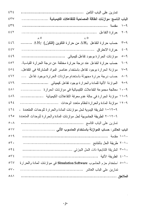 ويشتمل الكتاب على عشرة أبواب تضمنت موضوعات الحسابات الهندسية، وموازنات المادة والحرارة مع وبدون التفاعل الكيميائي، وأنظمة الطور الواحد والأطوار المتعددة. كما يشمل الباب الأخير كيفية استخدام الحاسوب في إعداد موازنات المادة والحرارة باستخدام حزم برامجية مختلفة مع شرح لكيفية استخدام حزم المحاكاة في هذا المجال.