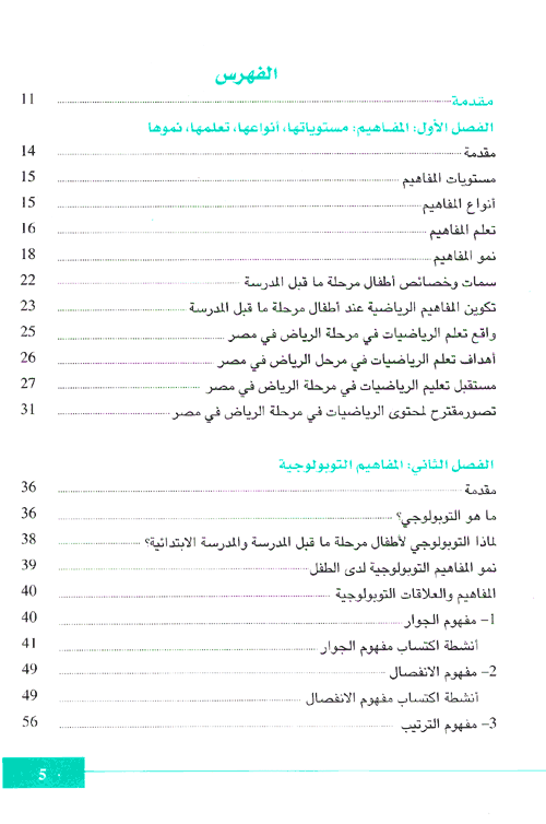 ولذلك يتكون هذا الكتاب من خمسة فصول تتناول: نظرية بياجيه وتكوين المفاهيم من حيث الأسس العامة لهذه النظرية وتكوين المفاهيم خلال مراحل النمو المختلفة على ضوء هذه النظرية، والعمليات النفسية الكامنة وراء تكوين المفهوم وكيفية إكساب هذه المفاهيم ومستويات نموها والعوامل المؤثرة فيها وخصائصها وأنواعها، كما تتناول: فلسفة رياض الأطفال في تنمية المفاهيم العلمية، والنظرية الفلسفية للطفل نحو هذه المفاهيم، والمعايير التي يجب مراعاتها عند تنمية المفاهيم العلمية، وتنمية قوة الملاحظة لدى الأطفال وأهمية إكساب المفاهيم العلمية لهم وخاصة عن طريق الاكتشاف الموجه كما تناول تنمية الأسلوب العلمي في التفكير والصعوبات الخاصة بتعلم المفاهيم العلمية. كما أشار هذا الكتاب إلى العديد من المفاهيم الفيزيائية والبيولوجية والكيميائية من حيث أهداف كل منها والأنشطة والتجارب الخاصة بتنمية هذه المفاهيم بحيث تتناسب مع ما يتم تعليمه من خلال العلوم في مرحلة رياض الأطفال.