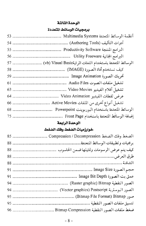 وتم الحديث عن القطع المادية المستخدمة لبناء الوسائط المتعددة وكيفية التعامل معها وتثبيتها على الجهاز ومدى الفائدة من استخدامها.