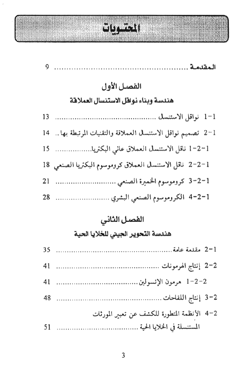 يقع الكتاب في عشرة فصول، تقدم عرضاً وافياً لأحدث التقنيات في الهندسة الوراثية المتقدمة وتطبيقاتها في المجالات الطبية والزراعية والصناعية المختلفة، ولأجل الوصول بالفائدة المرجوة إلى أقصى معدلاتها فقد أضيف إلى الكتاب نخبة مختارة من الأشكال والرسوم والجداول الغنية بالمعلومات المهمة والحديثة. إقرأ المزيد