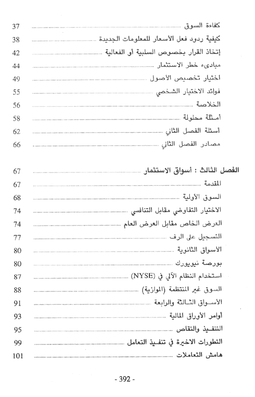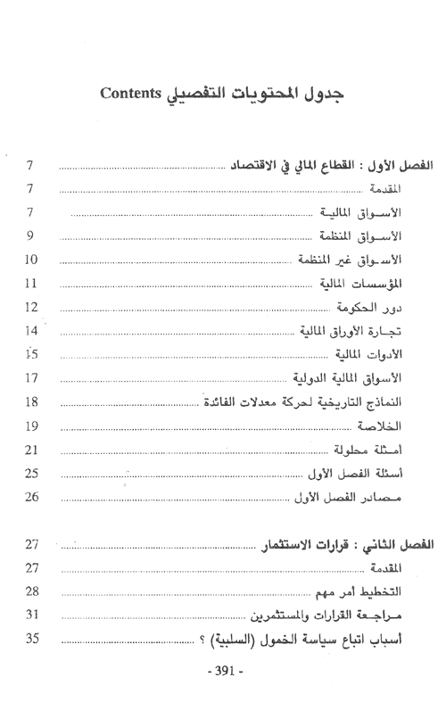 وتناول الكتاب المواضيع الخاصة والمهمة في مجال الاستثمار بأسلوب رياضي بسيط مع توسع في المفاهيم البديهية والاقتصادية الخاصة بالاستثمار. ويمكن فهم الكتاب حتى في حالة عدم وجود أساس في الرياضيات أو مبادئ الاقتصاد. ويتكون هذا الكتاب من سبعة فصول.