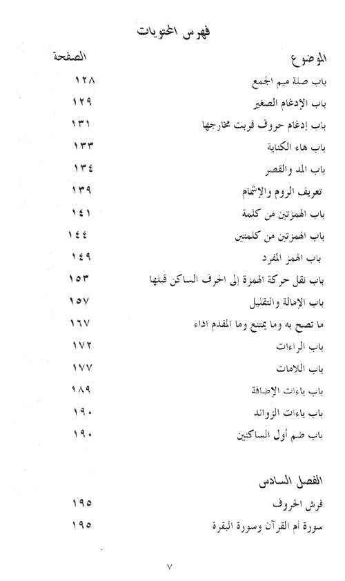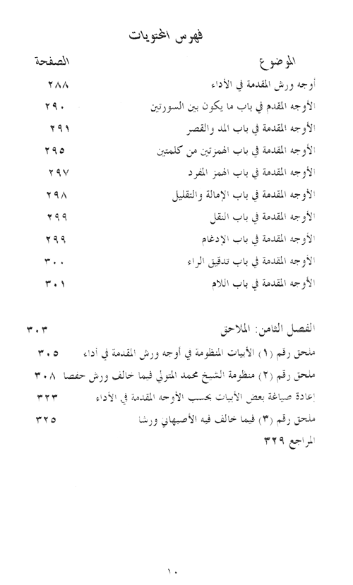 وقد أضاف إلى أبواب الأصول باباً جديداً هو باب ضم أول الساكنين... كما أنه تتمه للفائدة أثبت رؤوس الآيات التي اختلفت فيها رواية ورش عن رواية حفص... إقرأ المزيد