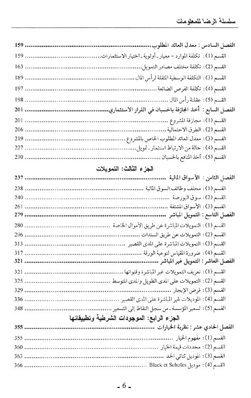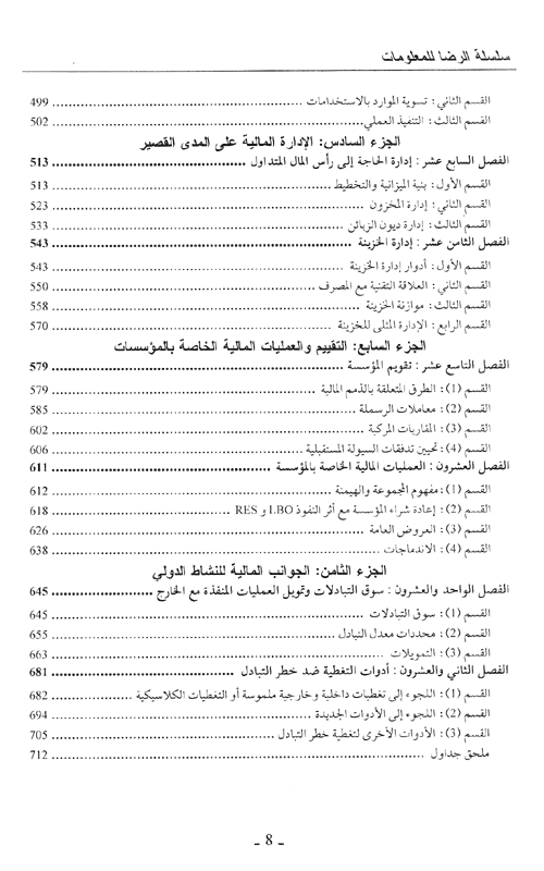 نبذة الناشر:المالية هي من المجالات التي تزداد أهميتها يومياً بعد يوم وكل مواطن, سواءً أكان مستهلكاً, أم عاملاً, أم مسافراً, أم متقاعداً, هو بطريقة أو بأخرى, معني بأحداث مأخوذة من المالية أو ذات علاقة بها وربما يفسر هذا الواقع شغف العديد من الطلاب بهذا النظام الإداري الذي لا يعد دوماً سهل ...الفهم. يطمح هذا المرجع المالي الهام لإدارة مالية المؤسسات والشركات الى إحضار عناصر الإجابة لهؤلاء الطلاب وغيرهم ممن يرغبون بمعرفة مبادىء المالية ووضعها موضع التطبيق العملي وقد رغب المؤلفان بحمل حسهم بالأشياء الذي يرتكز على الخبرة العملية بالمؤسسات وعلى العديد من سنوات التدريس. إن العملية التدريسية هي انعكاس لرؤية العالم كما جهد المؤلفان من أجل ضمان التوازن بين المفهوم النظري والواقع العملي من خلال الشرح الحدسي والاستنباط والسيرورة المنطقية والمرجعية التقنية. إن جميع هذه الخصائص توجه هذا المرجع المالي الى طلاب علوم الإدارة مثلما توجه الى أصحاب الشركات الذين لديهم همّ الحفاظ على التماس مع نظام يتعرض لتطور مستمر وسريع, أو بكل بساطة لديهم هم إحلال عملهم المهني اليومي في سياق أوسع في مجال المالية. إقرأ المزيد