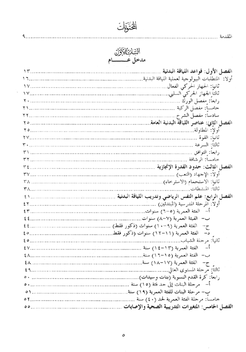 نبذة نيل وفرات:اشتمل هذا الكتاب على موضوعات شاملة عامة وخاصة، حيث تكون من أربعة أبواب، انفرد الباب الأول منها بمدخل عام لمفهوم وقواعد وعناصر اللياقة البدنية العامة، إضافة إلى علم النفس الرياضي وتدريبات اللياقة البدنية.