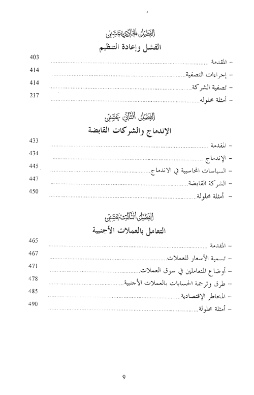 وانطوى الفصل الحادي عشر على بيان أسباب الفشل ومعالجته في منشآت الأعمال لا سيما في محاولات الدائنين لإعادة تنظيم المنشأة Reorganization بهدف إعادة تأهيلها Rehabilitation. تناول الفصل الثاني عشر أشكال نمو المنشآت من خلال النمو الداخلي Interal growth، أو النمو الخارجي External Growth أو الاندماج Business Combinations وأسباب وآلية كل منهما.