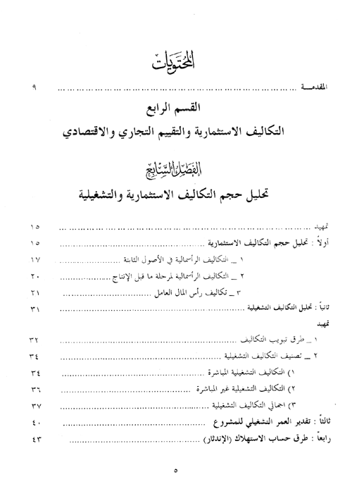 إذا إن ما يسعى إليه هذا الكتاب بجزئية هو تقديم دراسة موسعة تمثل مادتها مدخلاً نظرياً وتطبيقياً في أسس إعداد دراسات الجدوى وتقييم المشروعات. والجزء الذي بين يدينا "الجوانب المالية الاقتصادية والاجتماعية" هو الثاني من هذه الدراسة وهو يضم القسم الأخير من الدراسة حيث خصص للتكاليف الاستثمارية والتقييم التجاري والاقتصادي. وكان تحليل التكاليف الاستثمارية والتشغيلية من نصيب الفصل السابع، وتحليل الأسعار والعوائد من نصيب الفصل الثامن، وخصص الفصل التاسع لتحليل الربحية التجارية، والفصل العاشر للتقييم الاقتصادي والاجتماعي للمشروعات الاستثمارية. وفي الختام، ثبتت الملاحق الخاصة بمعاملات الخصم، ونماذج لبعض الاستثمارات الخاصة بفترة تنفيذ المشروع، والأخرى خاصة لما بعد تنفيذ المشروع. إقرأ المزيد