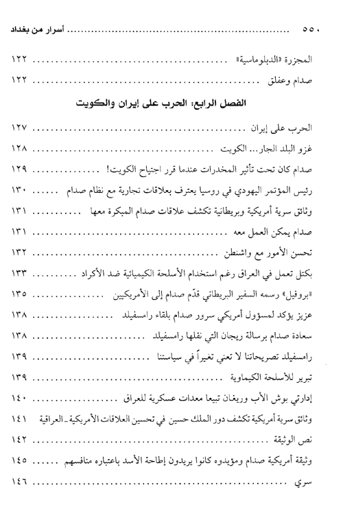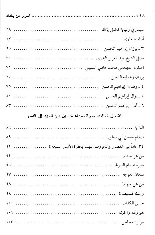 وهذا الكتاب يحاول حل تلك الطلاسم وتوثيق ما حدث، مستعرضاً أكثر من رواية للحدث بالنص والتحليل، خاصة لغز السقوط المريع لبغداد، حيث سنكشف النقاب عن أكثر من خيانة حصلت بالفعل، كذلك عملية القبض على الرئيس المخلوع صدام حسين، وما اكتنفهما من أسرار، وأحاط بها من غموض، وسيتعرض الكتاب لتاريخ النظام الحافل بالجرائم المريعة والمقابر الجماعية، ونحاول أن نقوم بإماطة اللثام عن الكثير من سيرة صدام السرية، واليت أخفيت حتى عن أقرب المقربين إليه، وسيرة أفراد أسرته والمقربين منهم.