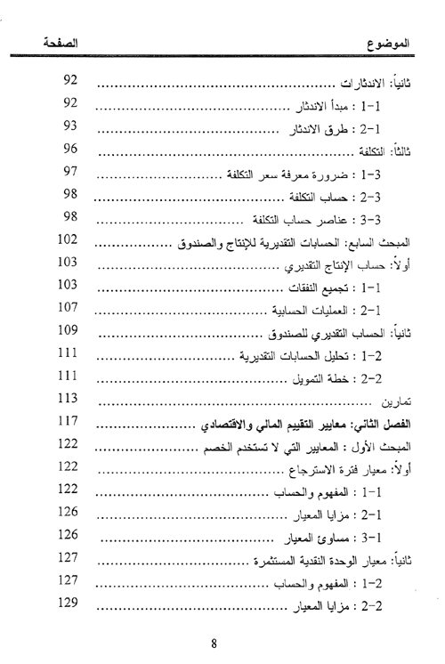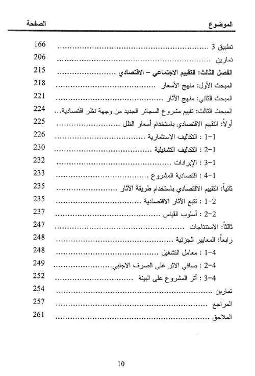حيث تضمن الفصل الأول عناصر التحليل الاقتصادي: الطلب، القوى العاملة.. الخ وقد حرصنا على إعطاء بعض التفاصيل الخاصة بكل عنصر مع بعض التطبيقات. وفي الفصل الثاني حرصنا على استعراض أهم المعايير المستخدمة في المجال التطبيقي مع بيان مزايا ومساوئ كل معيار، إضافة إلى الأمثلة المحلولة.