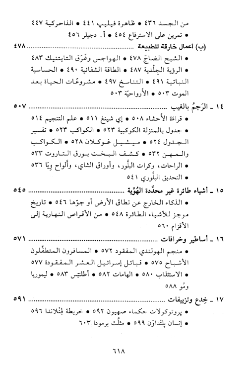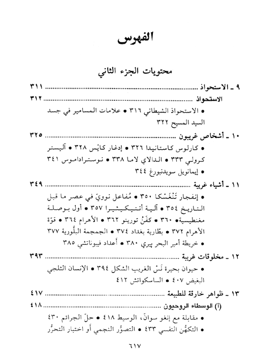 كل ظاهرة أخرى طالما فكر فيها الإنسان وتساءل عنها، روحانيون قدامى ومحدثون، علم الفلك، الثقب الأسود، الباراسيكولوجيا، نفاذ البصيرة وبعد النظر، وقائع، أساطير، ألغاز، معجزات، ...وسائر الأمور الغريبة التي قد تكون سمعت بها، ولكنك مع ذلك، لا تعرف عنها، بالفعل، سوى القليل القليل...