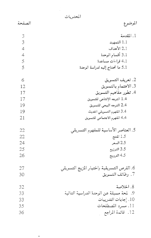 ولعل مما يثري تجربتك في مجال ذي طبيعة إنسانية كالتسويق، هو أن تحاول التعرف على محتوى المادة التعليمية الواردة في هذه الوحدة الدراسية، والتي تتكون من ستة أقسام رئيسية، وتزودك بخلفية عامة، وإطار شامل عن التسويق. وستساعدك أيضاً على تحديد مفهوم التسويق، وتعرف مضامينه الحديثة، وما تنطوي عليه من أنشطة فاعلة تستطيع المؤسسة الحديثة من خلالها أن تصل إلى أهدافها الواضحة، والمحددة. وتساعدك هذه الوحدة على فهم طبيعة العملية التسويقية وما تتميز به من ديناميكية.
