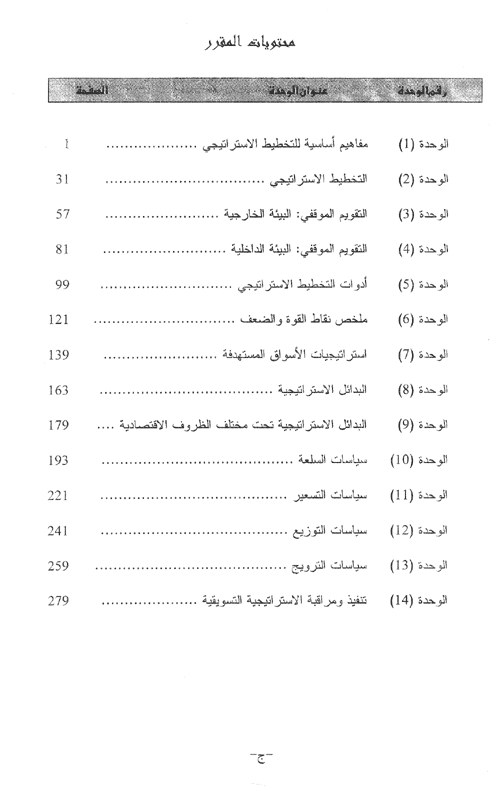والمقرر الذي بين أيدينا يأتي في هذا الإطار حيث يعني أولاً: بتقديم شرح واضح للمفاهيم الأساسية لاستراتيجية التسويق، ثانياً: التعريف بعملية التخطيط الاستراتيجية، ونطاق عمل المؤسسة، والبدائل الاستراتيجية المتاحة، ثالثاً: الإلمام بكيفية التحليل الموقفي لمختلف العوامل البيئية المحيطة بالمؤسسات المعنية، رابعاً: توضيح أساليب استخدام أدوات التحليل الاستراتيجي في عملية التحليل الموقفي، وبناء الاستراتيجية المناسبة.نبذة الناشر:اتخاذ القرارات التسويقية في الاوضاع المختلفة، التكامل بين استراتيجيات السلعة، التوزيع، التسعير، والترويج، من اجل تقييم استراتيجيات التسويق. إقرأ المزيد