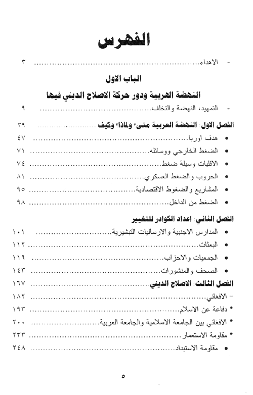 واقتضى ذلك البحث في زمن النهضة وأسبابها (هدف أوروبا، الضغط الخارجي ووسائله، الحروب والضغط العسكري، المشاريع والضغوط الإقتصادية) وكيفية الإعداد لها (المدارس الأجنبية والإرساليات التبشيرية، البعثات، الجمعيات والأحزاب، الصحف والمنشورات) ثم الإصلاح الديني (الأفغاني، ودفاعه عن الإسلام، وموقعه بين الجامعة الإسلامية والجامعة العربية، محمد عبده والتربية، وأّهدافه من الثورة العربية...).