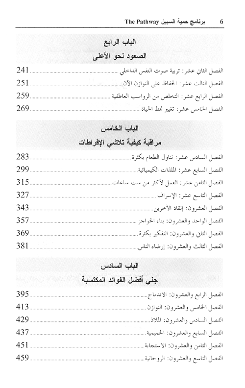 أما الجزء الأخير من الكتاب فيلقي الضوء على الوسائل التي تساعد في التخلص من الإفراطات المألوفة، وتساعد أيضاً في الحصول على المزيد فوائد من التوازن مع الذات. قد تكون ميالاً لقراءة الفصول التي تهمك فقط عن الإفراطات والفوائد، ولكن جميع فصول هذا الكتاب، حتى تلك التي تبدو لك أنها بعيدة كل البعد عنك ولا تلائمك، تتضمن أفكاراً وملاحظات واقتراحات قد تلعب دوراً هاماً في اتقانك وبراعتك في تنفيذ تلك المهارات.