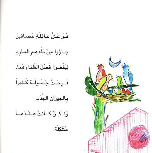 نبذة نيل وفرات:جمولة دجاجة حمراء تسكن وحدها في بيت صغير أحمر بجانب شجرة كبيرة، تستيقظ كل صباح باكراً لتنظيف البيت وتجمع الأكل وتزور أصحابها.. وفي المساء تنام باكراً لأنها تكون تعبة جداً من مشاغل النهار. في يوم من الأيام أفاقت جمولة على صوت زقزقة عصافير عالية وقريبة منها، أطلت رأسها من ...شباك المنزل فرأت عشاً كبيراً جديداً على الشجرة جانب بيتها، هو عش عائلة عصافير جاؤوا من بلدهم البارد.