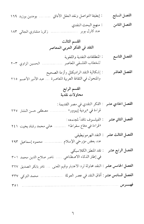 إن تاريخ الفكر البشري كما مثلته الحضارات قديماً وحديثاً هو تاريخ النقد. فالنقد هو أداة التحول والانتقال من مرحلة تاريخية إلى أخرى ساهمت فيه الحضارات، وأسسه الأنبياء والمفكرون والعلماء. النقد شرط الإبداع، والإبداع ...شرط التقدم والنهضة. على أن الواقع العربي لا يزال مغطى إما من الموروث القديم، أو من الوافد الجديد في الفكر أو تسلط نظم الحكم في الواقع. ويظل هذا الغطاء قائماً ما لم تبدأ حركة نقد جذري حتى ينزاح الغطاء، ويحدث انكسار معرفي بين الأنا والواقع، ويحدث التساؤل بدلاً من الإجابة الجاهزة دون السؤال.
