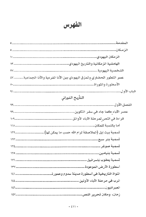 نبذة الناشر:يشكل هذا الكتاب محطة أساسية في دراسة المعتقد اليهودي والشخصية اليهودية, فيؤكد أن التوراة في جانبها النصي الثقافي الأدبي لا تمتلك أي نص أصلي, فجميع نصوصها إما مهودة وإما تشكل حالة تناص مع نصوص حضارات بلاد الشرق الأدنى القديم. ويدرس الظروف الموضوعية التي أسهمت في تشكيل الشخصية اليهودية التي اتسمت ...بالعنصرية والأنانية والجشع وحب المال, وتأثير عسر التطور الحضاري, وتمزق اليهودي بين الأنا الفردية والأنا الجماعية على بنية هذه الشخصية. ويدرس عصر الآباء وعصر الخروج وعصر القضاة وعصر المملكة المتحدة والمملكة المنقسمة, مع قراءة في نصوص كل عصر. ويتناول بالدراسة أنبياء وملوك إسرائيل ويهودا وعلاقاتهم السياسية والدينية. إقرأ المزيد