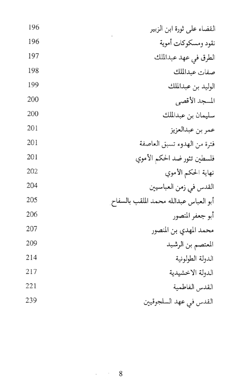 وسيعرف القارئ من خلال هذا الكتاب عظمة تلك المدينة وسيطلع من خلاله على تاريخها المجيد، فهي المدينة التي صمدت لنوائب الزمان بجميع أنواعها، وطوارئ الحدثان بجميع ألوانها، حتى أنه لم يبق فاتح من الفاتحين، أو غازٍ من الغزاة المتقدمين والمتأخرين، الذين صالوا في هذا الجزء من الشرق، إلا ونازلته؛ فإما يكون قد صرعه، أو تكون هي قد صرعته. إنها مدينة مقدسة. داسها هذا... القدس... معناه في اللغة الطهر والبركة والقداسة... وقداستها هذه وإن كانت قد رفعت قدرها وشرّفت اسمها وأذاعت في الخافقين صيتها؛ إلا أنها في الوقت نفسه كانت السبب في معظم البلايا والمحن التي أصابتها، حيث راح الناس من جميع أطراف المعمورة يغدون إليها يريدون امتلاكها.