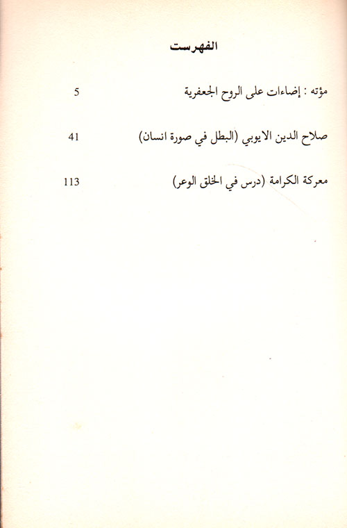 إنها مؤته القراءة الأولى والمحاضرة الأولى له في مجموع هذه المحاضرات والتي ألهمته هذه القراءة في التاريخ.. إنها مؤته.. المكان، والمعركة، والأمراء القادة، والمشهد، والأضرحة، وورد الجنوب، وزمان الصدام الأول الخطير. وأما قراءته الثانية أو المحاضرة الثانية في البطولة فهي تلك القراءة على ضريح جعفر بن أبي طالب ساكن المزار المطل على ساحة معركة مؤته. والقراءة الثالثة أو المحاضرة الثالثة كانت في صلاح الدين الأيوبي البطل في صورة إنسان. وعنوان هذه المحاضرة متصل بكتاب مهم ومعروف هو "كتاب الأبطال" لمؤلفه توماس كارلايل، وقد رسم فيه ملامح للنماذج العالية في البطولة اختار لكل منها صورة تمثلها وهي: البطل في صورة إله (أو دين). البطل في صورة رسول (محمد بن عبد الله). البطل في صورة شاعر (دانتي، شكسبير). البطل في صورة قسيس (لوثر، نوكس). البطل في صورة كاتب (جونسون، روسو، بارنز). البطل في صورة ملك (رومل، نابليون).