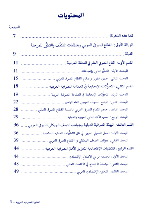 وهذه النشرة تضاف إلى ...مجموعة المطبوعات العلمية التي يعدها ويصدرها الاتحاد، سواء في داخل أمانته العامة أو بالتعاون مع الخبراء العرب المعروفين في عالم المصارف والمال والاقتصاد. وهي بذلك تعزز الدور البحثي لاتحاد المصارف العربية الذي يصدر أيضاً مجلته العلمية المتخصصة ومؤلفاته المصرفية والمالية، هذا إلى جانب دوره المعروف على صعيد تنظيم الندوات والمنتديات والمؤتمرات وما تتضمنه من إسهامات وطروحات علمية وعملية مفيدة للصناعة المالية والمصرفية العربية.
