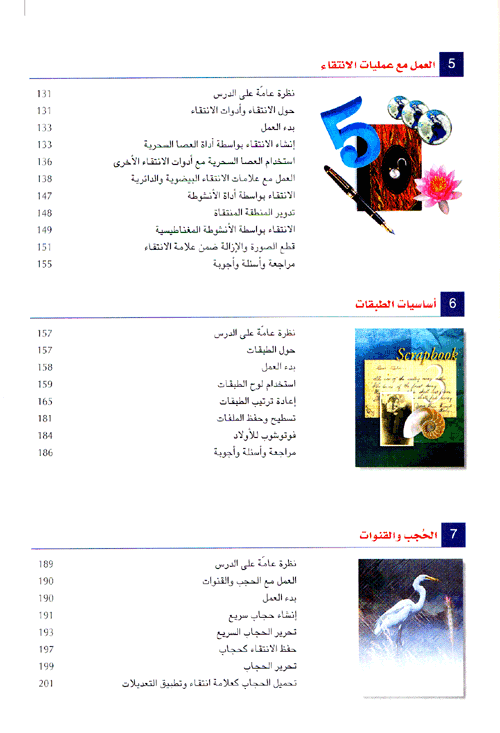 وعلى الرغم من أن كل درس يقدم التعليمات على أساس الخطوات المتتالية التي تؤدي إلى إنشاء مشروع محدد، إلا أنه يوجد أيضاُ مجال واسع للاختيار والتجربة. يمكنك متابعة الكتاب من البداية إلى النهاية، أو تنفيذ الدروس التي تهمك وتلبي حاجتك. وكل درس ينتهي بقسم المراجعة الذي يلخص منا تعلمته قي الدرس.