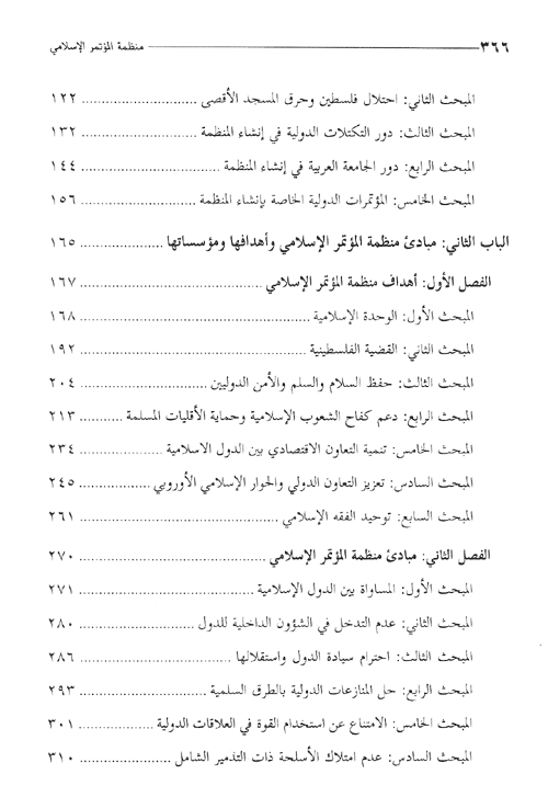 وبناء على ذلك فإن هذه الدراسة شملت على بابين. تناول الأول: دراسة تطور التنظيم الدولي بصورة عامة والتنظيم الدولي الإسلامي في التاريخ الإسلامية ووزع على ثلاثة فصول تناول الأول: التنظيم الدولي في التاريخ الإسلامي. وفي الثاني: دعوة المفكرين الإسلاميين إلى إنشاء منظمة إسلامية للدول الإسلامية. أما الفصل الثالث: فتناول تاريخ إنشاء منظمة المؤتمر الإسلامي. وفي الباب الثاني تناول لأهداف منظمة المؤتمر الإسلامي ومبادئها وهيئاتها. إقرأ المزيد