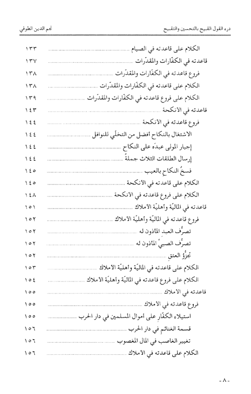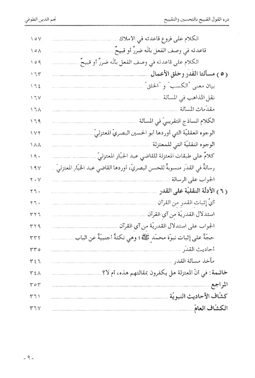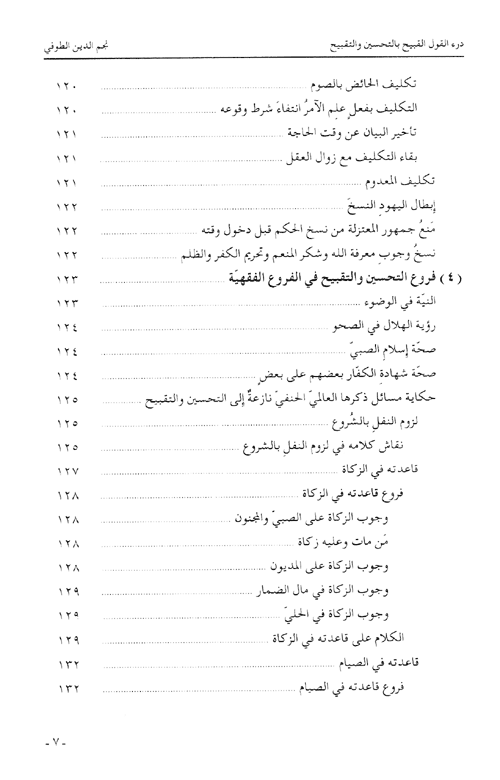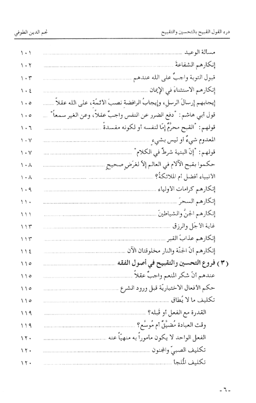نبذة نيل وفرات:كتاب "درء القول القبيح بالتحسين والتقبيح"، الذي صنّفه نجم الدين الصوفي في سنة708/1308-1309 هو، في موضوعه العام ومضمونه، من أهم ما كتبه على الإطلاق، حيث أفرده لموضوع التحسين والتقبيح، فبحث في أصل هذه المسألة وفروعها، في أصول الدين وأصول الفقه وفروعه، والظاهر أنه لم يسبق أن ضُمِّن كتابٌ واحداً ...كل هذا ومثل هذا التنويع في المواضيع؛ فيكون كتاب الطوفي ممثلاً فريداً وجامعاً لأقوال جمهور أهل السنة في المبحث، ومرجعاً لمعظم فروعه. ومما يعدّ لهذا الكتاب أيضاً ندرة الفصول المفردة في كتب الفقه في تعلّق مسألة التحسين والتقبيح بالفروع الفقهية، وهو موضوع الفصل الرابع من الكتاب.