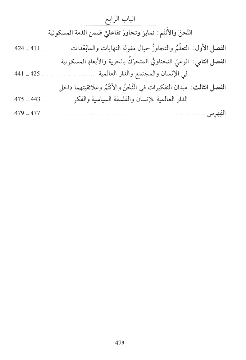 ويرى المؤلف أن هذه الميادين تتفاعل ...وتتحاور فيما بينها كما أنها تتبادل التعزيز متواضحة متعاذية، حتى أن نجاح ميدان أو مذاهب مختلفة داخل الميدان الواحد عنيه، يسهم في نجاعة الميدان الآخر وبالتالي في نجاعة وتوضيح أو إعادة صياغة البنية العامة أو الشكل الأكبري، البنية أو الوحدة الكلية.