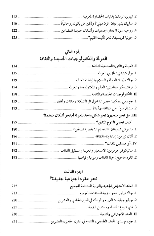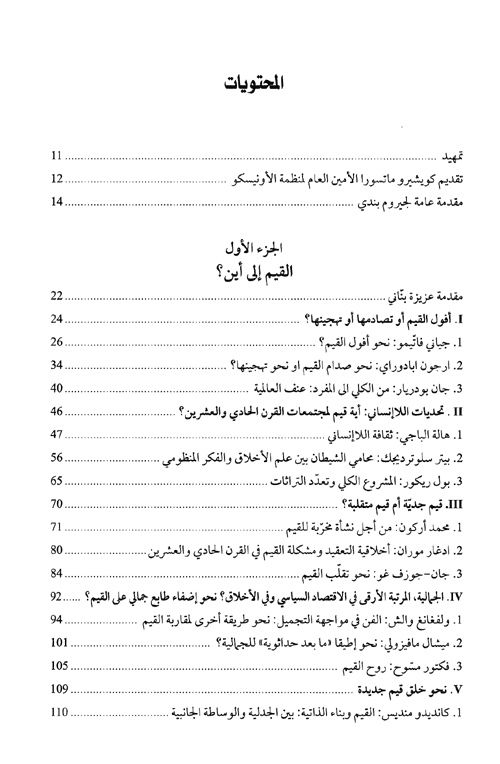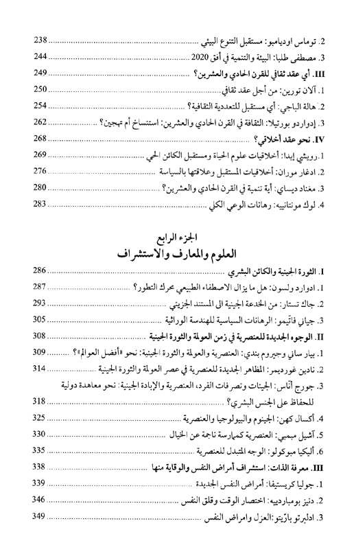 هذا الكتاب يشتمل على مختارات للأفكار التي عرضت أثناء هذه اللقاءات الاستشرافية، من الجلسة العاشرة حتى الجلسة العشرين التي عقدت في 19 أيلول/سبتمبر عام 2001. كذلك قامت شعبة التوقع والدراسات بتنظيم سلسلة ثانية من "محاورات القرن الحادي والعشرين" التي جمعت غداة أحداث الحادي عشر من أيلول/سبتمبر، في 8 كانون الأول/ديسمبر، أكثر من عشرين مشاركاً بارزاً على الساحة الدولية، وذلك من أجل تبادل الأفكار حول موضوع عام بعنوان "القيم إلى أين؟". إقرأ المزيد
