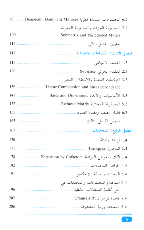 يغطي الكتاب مفردات الجبر الخطي لطلبة العلوم والهندسة إضافةً إلى كليات المعلمين والمعاهد العليا، ويعتبر وجهاً ممتازاً لطلبة الدراسات العليا حيث طرحت مفاهيم حديثة قيد البحث والتطوير.
