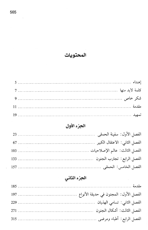 والكتاب زاخر بمعرفة علمية تخص الجنون والعقل واللاعقل والاختلال النفسي وكل السلوكات "الغريبة" و"الشاذة"، وكذا الاندفاع نحو حدود لا تتوقف عن التوغل في المجهول. لذلك فهو يتحدث عن "الطب العقلي" و"السيكولوجيا" و"التحليل النفسي" وكل الأشكال العلاجية التي أعقبت العصر الكلاسيكي معلنة عن ميلاد "المجنون المريض" الذي سيخلف المجنون "الدرويش" و"الوحش" و"الشاذ"، تماماً كما سيخلف المارستان والعيادة دور الحجز والمستشفى العام.