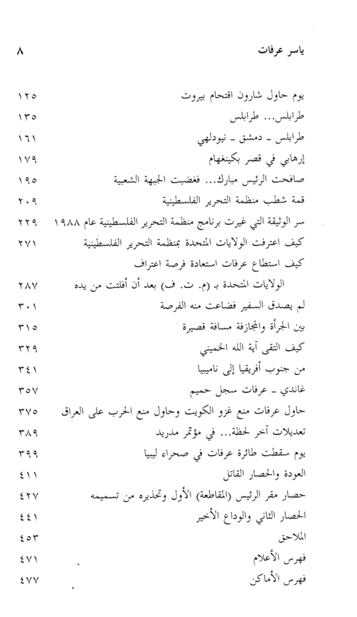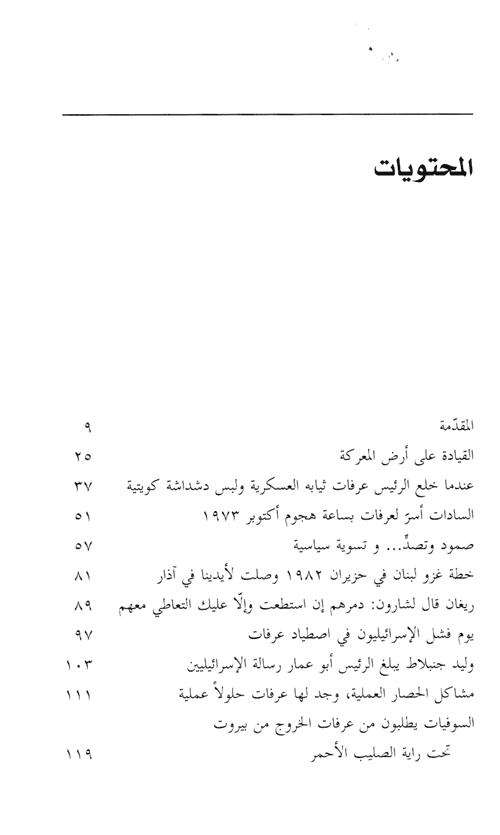 وفي هذا الكتاب يروي رفيق دربه بسام أبو شريف سيرة المشوار النضالي لياسر عرفات كاشفاً في الكثير من الزوايا عن أحداث حملت في طياتها الكثير من الخلفيات السياسية التي توضح للقارئ الوضع المأساوي الذي كان يرافق حياة ياسر عرفات حتى اللحظات الأخيرة في حياته، كما أنه يكشف عن المراحل الصعبة إلى حين نضوج فكرة الدولة الفلسطينية والتي استطاع ياسر عرفات تجاوزها ليصل بشعبه على لحظة سحب من خلال سياسته الحكيمة الاعتراف من الآخرين بحقهم في أرضهم. مستمراً في عمله الدؤوب دون كلل أو ملل أو خوف لتصبح هذه الفكرة أو هذا الاعتراف مترجماً من خلال خطوات عملية أتاحت بروز وجه للدولة الفلسطينية بعد طول غياب وبعد يأس مفرط في عودته.نبذة الناشر:مثل ياسر عرفات على الدوام شخصية استثنائية حيكت حولها الأساطير ولفها الغموض.