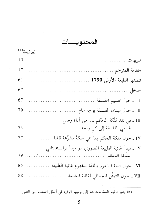 نبذة الناشر:بإمكانك أن تكون مع كنت أو أن تكون ضده، ولكنك لا تستطيع أن تتفلسف بدونه، ومهما يكن، فهذا الكتاب أو النقد الثالث هو بمثابة حجر الأساس في المنظومة الفلسفية الكنتية. إنه يثير القضايا التي بقيت موضوع ملكة العقل الثالثة: ملكة الحكم، وذلك بعد أن تأسست المعرفة النظرية بالطبيعة (نقد العقل ...العملي) ولهذه الملكة مبدأ قبلي، هو الاستقلالية الذاتية، ولها حقول، أيضا، ليست موضوع النقدين السابقين، واعتبرت في الماضي خارج تأثير الفلسفة، لكنها في صلب اهتمام النقد (الترانسند نتالي): الجميل والسامي، الشعور باللذة، والألم، والرغبة والغائية، بصفتها نتاج الفعل الإنساني، أكانت فناً أو غاية أو إيماناً. من هنا كان لا بد من البحث في الفنون والعبقرية واللذة والبراهين عن وجود الله.