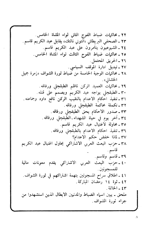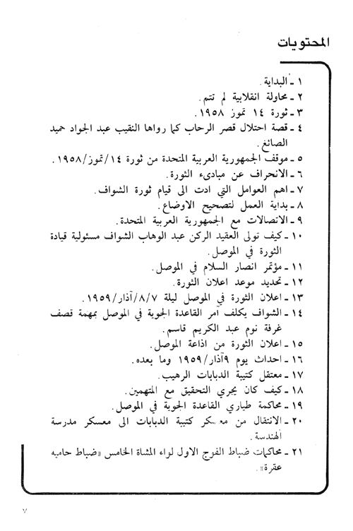 وفي هذه المذكرات يروي اللواء الركن "حازم حسن العلي" وهو أحد ألشخاص الذين عايشوا أحداث تلك الثورة وبالتالي تمكن الإطلاع على الكثير من خفاياها من خلال مساهمته فيها، وإثناء وجوده في السجن بسبب فشلها، يروي القصة الكاملة لأسرار هذه الثورة بكل تفاصيلها وأسرارها وأحداثها كما عايشها وعرفها وقصده من ذلك تدوين الحقائق بتجرد ودون أي انفعال بعد أن مضى على تلك الأحداث أكثر من ربع قرن. إقرأ المزيد