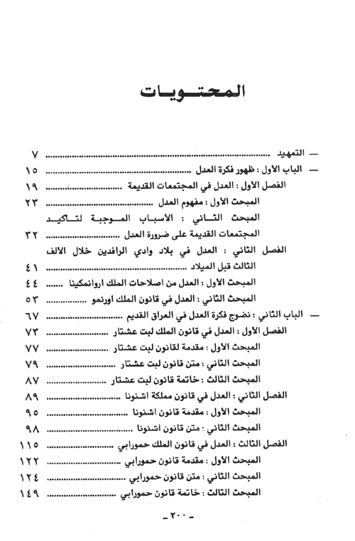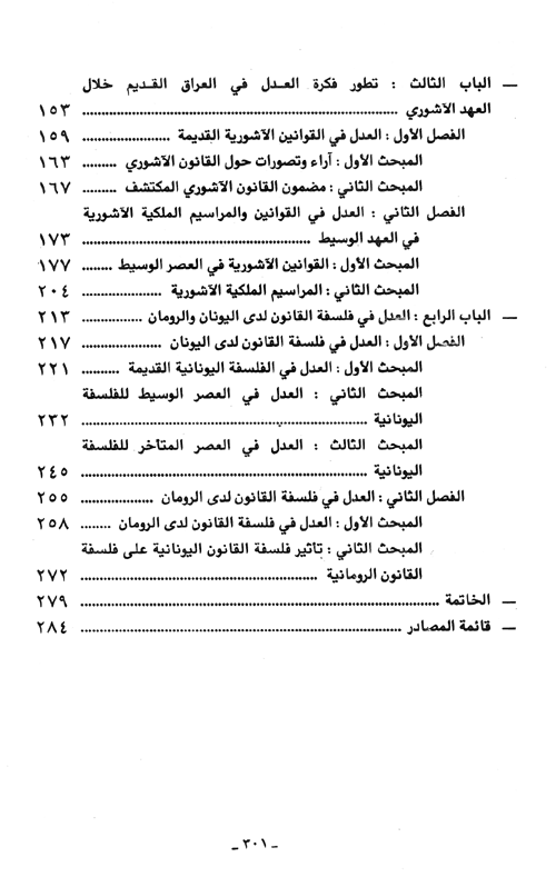 ولما كانت المصادر قليلة فسيكون البحث أصعب. ومع كل ذلك حاول المؤلف أن يجد الكيان اللازم لذلك، وبحسب الخطة الموضحة في صدر هذه الدراسة التي رأى اعتقاداً واجتهاداً أن يقسمها إلى أربعة أبواب أساسية، تتناول: الباب الأول: ظهور فكرة العدل. الباب الثاني: نضوج فكرة العدل في العراق القديم. الباب الثالث: تطور فكرة العدل في العراق خلال العصر الآشوري. الباب الرابع: العدل في فلسفة القانون لدى اليونان والرومان. إقرأ المزيد