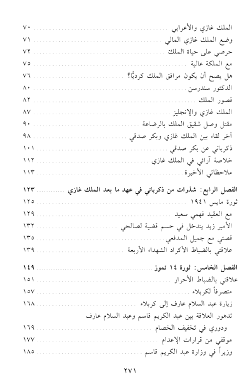 نبذة الناشر:لتكمن المذكرات كمذكرات فؤاد عارف أو ليقلع الناس عن كتابة المذكرات، وذلك يعود إلى سمات بارزة في كاتب هذه المذكرات، الذي رضع لبان الأخلاق من آبائه وأجداده، فأبوه وجده وأمه وخاله من علية القوم الأكراد في العراق، علموه الإخلاص بأرع معانيه، والاستقامة في كل تصرفاته، وتبلورت هذه السمات في تربيته ...العسكرية يوم دخل المدرسة الحربية وكان رفيقه على مقعد الدراسية العسكرية الملك غازي بن الملك فيصل الأول الذي تسلم العرش بعد وفاة والده جلالة الملك فيصل الأول.