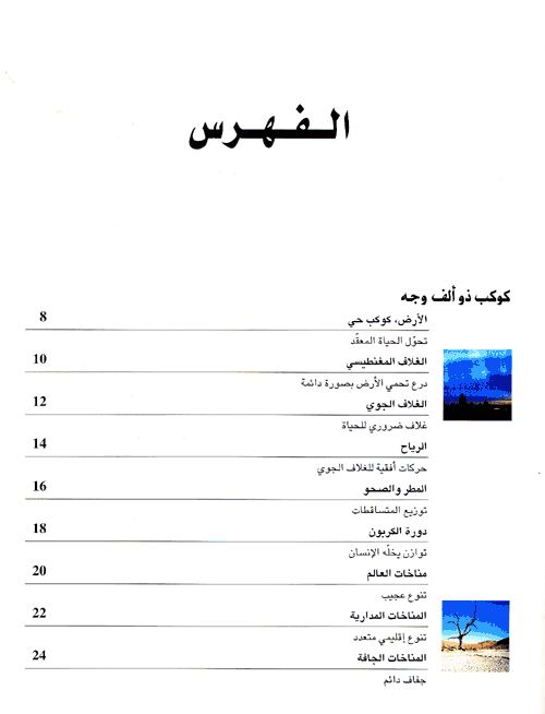 وفي هذا الكتاب يقدم ...المؤلفون معلومات جديدة تتعلق بكوكب الأرض وكيفية ظهور الحياة عليه بعد أن كانت الأرض في البدء وسطاً مناوئاً للحياة ثم تكونت بعد ذلك المحيطات وظهرت في باطنها كائنات حية وتتحدث هذه الموسوعة عن الغلاف المغنطيسي حيث تحتمي الأرض من الرياح الشمسية بواسطة الغلاف المغنطيسي الأرض وخلال الثورات البركانية الشمسية الشديدة يغدو الغلاف المغنطيسي مسرحة لعدة ظواهر مشوشة.