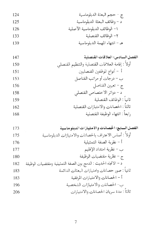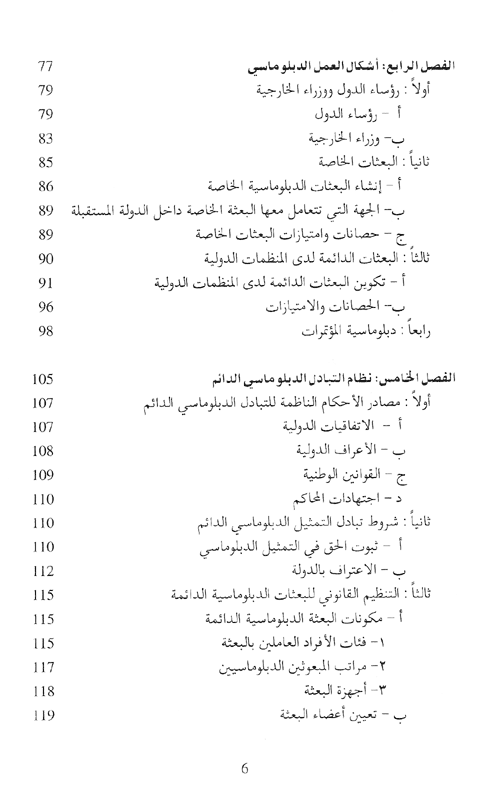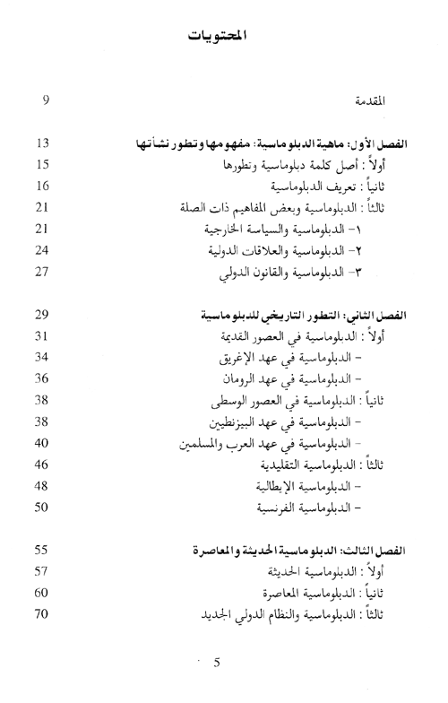 وقد جاء هذا الكتاب في محاولة لمعالجة جميع الموضوعات والقضايا المتعلقة بالدبلوماسية؛ حيث ناقش الكتاب مفهوم الدبلوماسية ونشأتها وتطورها التاريخي، وتناول الدبلوماسية في العصر الحديث والمعاصر، ثم انتقل إلى أشكال العمل الدبلوماسي ونظام التبادل الدبلوماسي، مروراً بالعلاقات القنصلية والحصانات والامتيازات الدبلوماسية، وانتهاءً بالاتجاهات والتطورات الجديدة في الدبلوماسية المعاصرة؛ حيث تناول تأثر الدبلوماسية بالاتصالات الحديثة وثورة المعلومات، وظاهرة دبلوماسية التنمية وعلاقة الدبلوماسية بالأمن القومي والبعد الديني والحضاري. ومع تطور ظاهرة المنظمات غير الحكومية تطور ما يسمى بالدبلوماسية غيرالرسمية، إضافة إلى أن الدبلوماسية المعاصرة باتت أداة في رسم معالم نظام دولي تجاري بين الدول. كما أن موضوعات مثل البيئة وحقوق الإنسان -والتي أصبحت ذات أولوية في الاهتمامات الدولية المعاصرة- حازت على قدر كبير من خصوصية التعامل، فكان لابد لها من دبلوماسية فريدة وغير تقليدية خاصة بها.
