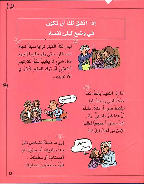 والصفات التالية تروي لنا كيف أن خمسة أولاد، ليلى ونديم وهدى وفادي وندى قد أزعجوا من قبل أكبر منهم أو من قبل بالغين. هذه القصص تشبه ما قد يحدث في الحياة. اقرأها جيداً. كل مرة ستجد نصائح لتتصرف تصرفاً حسناً، لتواجه شخصاً خطراً، كما تجد حلولاً لتحمي نفسك، ولقول لا بكل بساطة. إقرأ المزيد