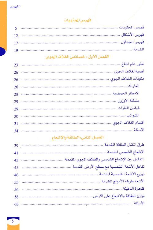 والمجال الثاني خصص لبحث موضوع الظواهر الجوية في ثلاثة فصول وشملت مواضيع مناخية كثيرة تحت عنوان التكاثف والهطول والظواهر الجوية مثل العواصف الرعدية والأعاصير المدارية؛ ويشمل المجال الثالث شرحا لمواضيع الظواهر المرئية والاقاليم المناخية وتغير المناخ.