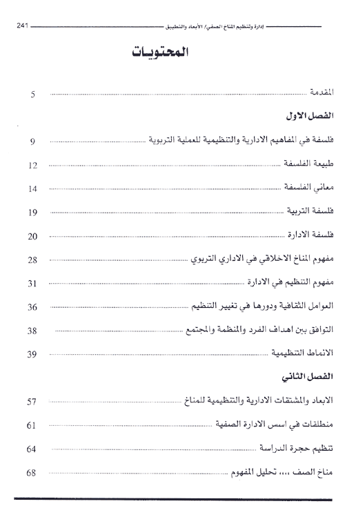 إنه المناخ الذي يتكيف فيه التلميذ ليروض ويتعايش مع بيئة الظروف والمرحلة. إن الإلمام بمتطلبات هذا المناخ وتوفير مستلزمات نجاحه ضرورة حياتية ومدنية وحضارية فمنه يستقي المعلم خبراته ويزيد تجربته ويمتحن قدراته في التدريس والتعليم ومنه يعلم التلميذ ما يحقق ذاته ويدفعه بحماس لتحويل هذا المناخ من ساحة لاستيعاب العلوم إلى استلهام مضامينها كرسالة فماذا يجري في الصف؟ ولماذا الإدارة والتنظيم فيه؟ وما دور المعلم والتلميذ في تأدية متطلبات هذا المناخ المفعم بالحيوية والفعالية والقدرة على العطاء المتواصل وتبادل الخبرات والأفكار والأداء بأجواء ديمقراطية فيها ما يدعو للإدلاء والرضا بدون خوف ولا قلق، حياة صفية صافية نقية في تعاملها مع الواقع، وآنذاك نمتلك القدرة على الضخ الفكري بحرية وخيار طوعي يتلاءم مع الواقع ويستمد ديمومته من الاستقرار والراحة الذهنية، إنه المناخ المناسب والصحيح والسليم للممارسات والتطبيق والقابليات والقدرات. إن التنظيم والرقابة الدقيقة لمناخات الصفوف تثري خبرة الإداري والقوائد التربوي وتزيد خبراته وقدراته في فرض النظام التربوي وتساعده على التخلص من الترهل الكبير الذي يصيب مسارات العملية التدريسية والتعليمية ويزيل قلق الفشل والإحباط في نجاح الممارسة النقية لقيادته. هذا ما جاءت به فصوله الأربعة لكي تتحدث بصمت عن واقع مستجداته الحضارية وهو هدف كتابنا هذا الذي جوهر مهمته إدارة المناخ التعليمي والتدريسي سلوكاً وممارسة للمتعلم وتطوير قدرات المعلم الذهنية والفكرية والمعرفية وتقديمها من وعاء التجربة والمعلوماتيات إلى طور التنفيذ والتطبيق بصورة واضحة ومرنة للاستخدام والاقتداء بها. إقرأ المزيد