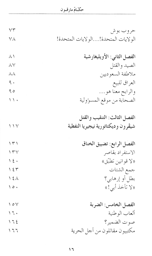 لم تنته الأمور عند هذا الحد لدى الإعلامية آيمي غودمانن بل هي كانت مجيدة إلى حد بعيد في استقصاء كل ما يتعلق في استغلال السلطة الأمريكية للإعلام أولاً ثم للنفط تحت غطاء سياسي صنعته لخدمة مصالحها دون الأخذ بعين الاعتبار للرأي المغاير لرأيها. تتحدث آيمي عن تكميم المعارضة وعن الشخصيات التي صنعتها الولايات المتحدة لخدمة مصالحها فالشاه وأسامة بن لادن وصدام حسين، مؤكدة على أن آلة الموت العراقية هي من صنعها، ومستفيضة تكشف عن التناقضات الواقعة بين ادعاءات بوش وحقيقة الأمر في حروبه التي شنها. ويمكن القول بأن ما تكشف عنه آيمي إنما هو كشف لأوراق سياسة أمريكا الخارجية التي تسعى وراء مصالح ومطامع تسعى لاكتسابها من خلال مزاعم تعطي لنفسها الحق من خلالها في اختراق أي بقعة من بقع العالم. وفي نبرة الإعلامية إيمي الكثير من الأسى والاحتجاج على سياسة أمريكا التخريبية التي اجتاحت العالم. دون أن تغفل في نهاية كتابها إلى الحثّ على إبقاء الإعلام حراً وإعطاءه دوره الفاعل الذي ربما استطاع لعب دوراً في تغيير السياسة الأمريكية أولاً ثم تغيير وجهها الذي أصبح مثار كره في جميع أنحاء العالم.نبذة الناشر:في "حكام مارقون"، تفضح الصحفية الفائزة بالجوائز المختلفة أيمي غودمان الأكاذيب، وكذلك حلقات الفساد، وجرائم النخبة المسيطرة، التي تهيمن على أجهزة الإعلام الكبيرة التي تحجب الحقيقة. وهي مولعة بمقولة مارغريت ميد: "لا تشككن أبداً أن مجموعة صغيرة من الناس الملتزمين المفكرين يمكن أن تغير العالم. في الحقيقة، إنهم الشيء الوحيد الذي غير العالم على الإطلاق"، هذا الكتاب يعلم ويشجع الناس على التصرف وفقاً لذلك المبدأ.